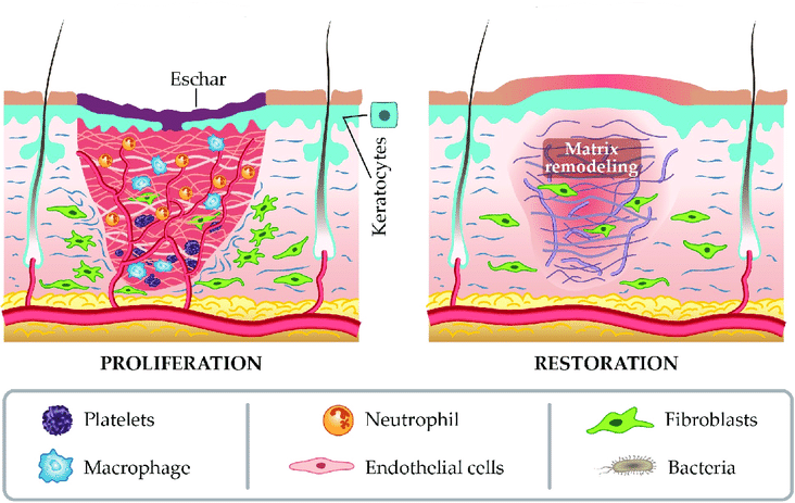 My partner recently injured his hand on a faulty ladder. This took off an area of skin over a proximal finger joint resulting in a dramatic amount of bleeding and an inability to use the finger. Over the days and weeks since we have watched the healing process with fascination, noticing the stages of recovery of both form and function. Normal wound healing has four recognised stages: haemostasis, inflammation, proliferation, and remodelling. For a wound to heal successfully, the four phases must occur in the right sequence and time frame. Many factors can interfere with this process, risking impaired wound healing.